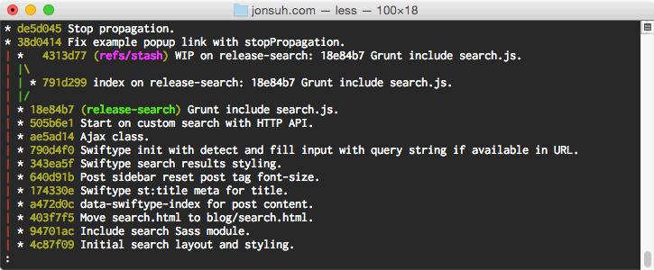 A lot of my time is spent in Terminal and a majority of it is spent typing Git commands. I created a set of keyboard shortcuts with Bash aliases and functions to speed up my workflow and save me hundreds of keystrokes every day.